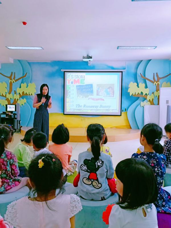 绘本讲读包含中文和英文两部分,今天是一年一度的母亲节,两位老师均围绕这个非常有纪念意义的话题分享故事情节。中文绘本题为《忘了说我爱你》,由牛恺莉老师进行讲读;牛凯莉老师用她甜美动人的声音把小盆友的思路和视线带到了一个极富童趣和想象力的世界! 故事中小主人翁因为妈妈一个不经意的举动而闷闷不乐,没心思上课,后来又因为妈妈每天必说的一句话瞬间开心起来,可见母爱对每个孩子来说是多么的伟大而神圣。英文绘本题为《A Gift to ALL the Mother》该部分则由陈苗苗老师进行讲读。陈苗苗老师通过图片让孩子们猜单词,了解故事情节,95%的孩子都积极参与进来,和老师进行互动、踊跃发言,课堂气氛非常活跃。这种启发式教学不但可以锻炼孩子们的思维能力、理解能力,而且引起了学生很大的学习兴趣和求知欲,孩子们都配合相当默契,和老师完全融入为一体。两个故事告诉我们,无论你变成什么,无论你走到哪里,妈妈永远都是那个最爱你和永远爱你的人。