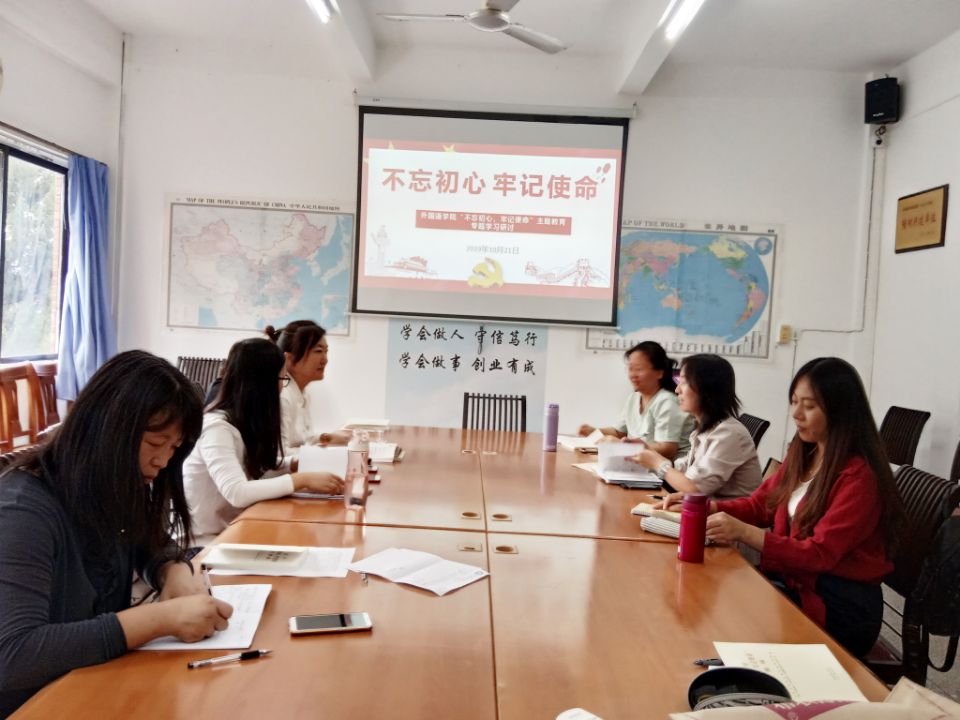 10月23日,Beat365正版唯一官网必一党总支在仰光楼203开展“不忘初心、牢记使命”主题教育专题学习。党总支副书记刘冬利支持,Beat365正版唯一官网必一理论中心组成员、学院副院长林燕媚、教工支部与学生支部委员参加了此次会议。