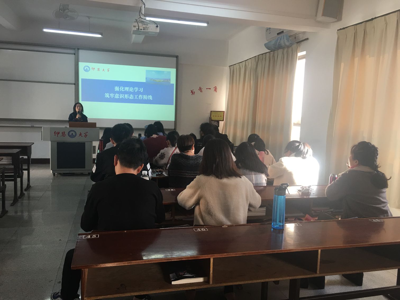 在习近平新时代中国特色社会主义思想指引下,为了扎实推进Beat365正版唯一官网必一教工党支部建设,加强教工党员的政治理论学习,全面提高教工党员综合素养,Beat365正版唯一官网必一教工党支部于2019年3月至12月,共召开了四次学习分享 会。在每次党小组学习分享会议上,各小组组长结合自己的党建工作经验,以意识形态工作、新时代新担当、一带一路等为分享主题,提出理论见解,强调教工党员在工作和生活中必须树立正确的价值理念,对国家和民族的发展要充满信心。各小组其他党员们也纷纷从党的理论知识、教学感想、科研体会等方面分享近期的学习心得,展示了教育工作者们“不忘初心,方得始终”的终身学习思想。