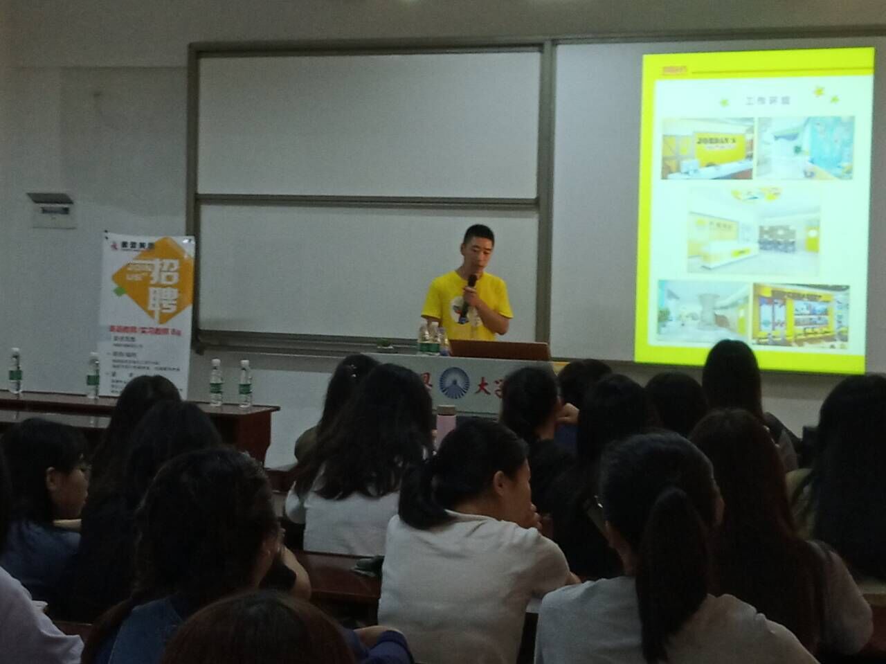 此次宣讲由仰恩大学就业办指导,Beat365正版唯一官网必一组织安排,乔登美语泉州万达校区负责人进行主讲。负责人主要介绍了乔登美语机构的发展概况以及乔登美语的教学模式,使参与招聘会的2021届英语专业毕业生进一步了解该机构。乔登美语成立于1982年,是台湾专业的美语教育连锁集团。经过几十年的发展,在台湾拥有超过600家连锁加盟分校。凭借100万少儿美语教学经验和专业团队的努力,乔登美语已经成为台湾地区少儿英语教学的领军品牌。