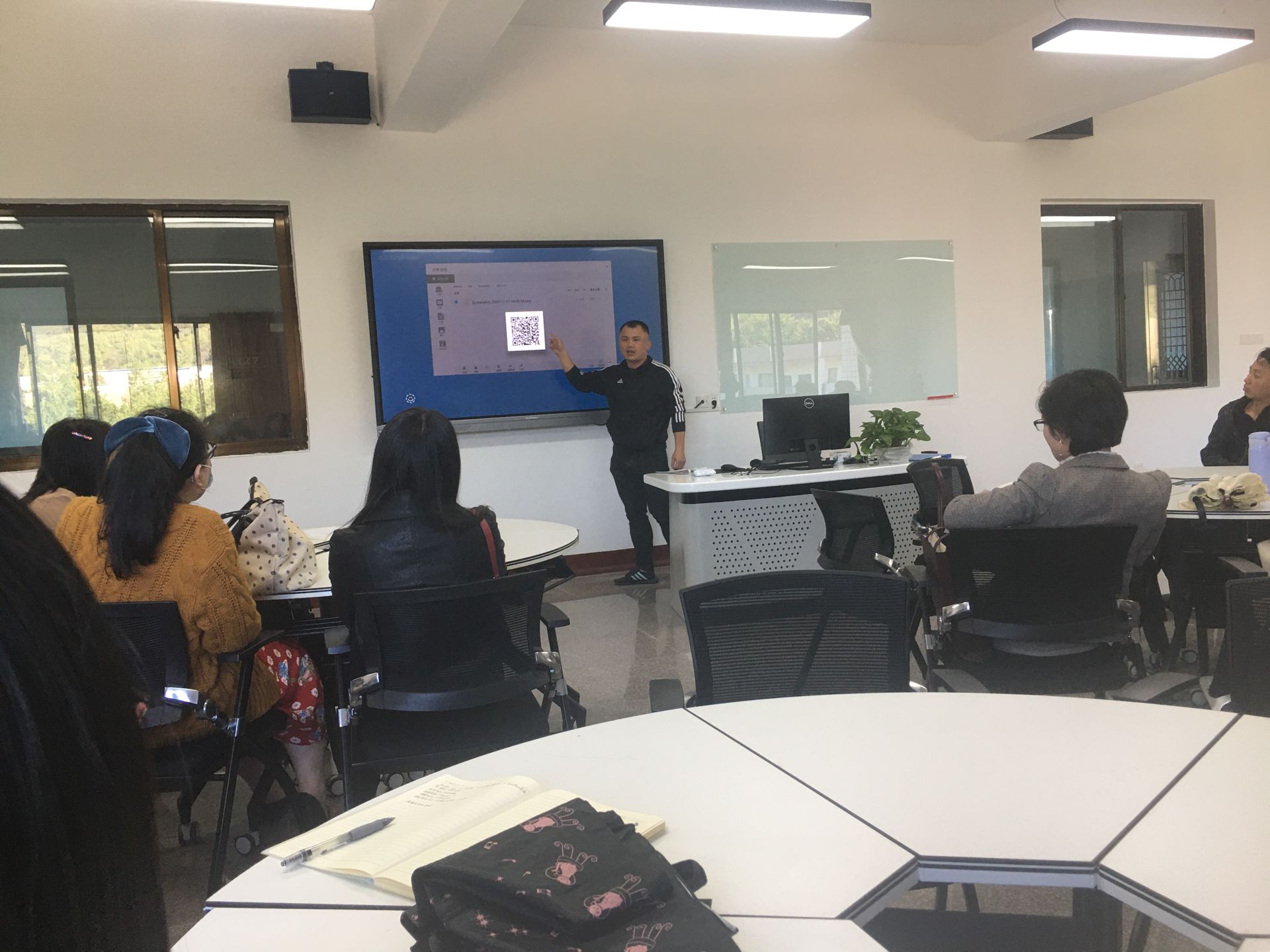 2020年11月11日下午2点,现教中心在普照楼326组织外语实验室操作培训。我院党总支书记胡娟老师及全体专任教师参加了培训。