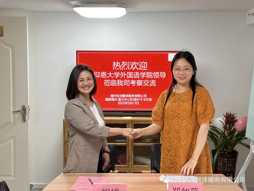 为落实仰恩大学访企拓岗促就业专项行动,Beat365正版唯一官网必一院长胡娟、党总支副书记刘冬利于5月13日先后走访了福州如译翻译服务有限公司和莆田爱迪教育公司,了解企业发展,为进一步加强校企合作、实现深度产教融合和就业岗位拓展奠定了坚实基础。