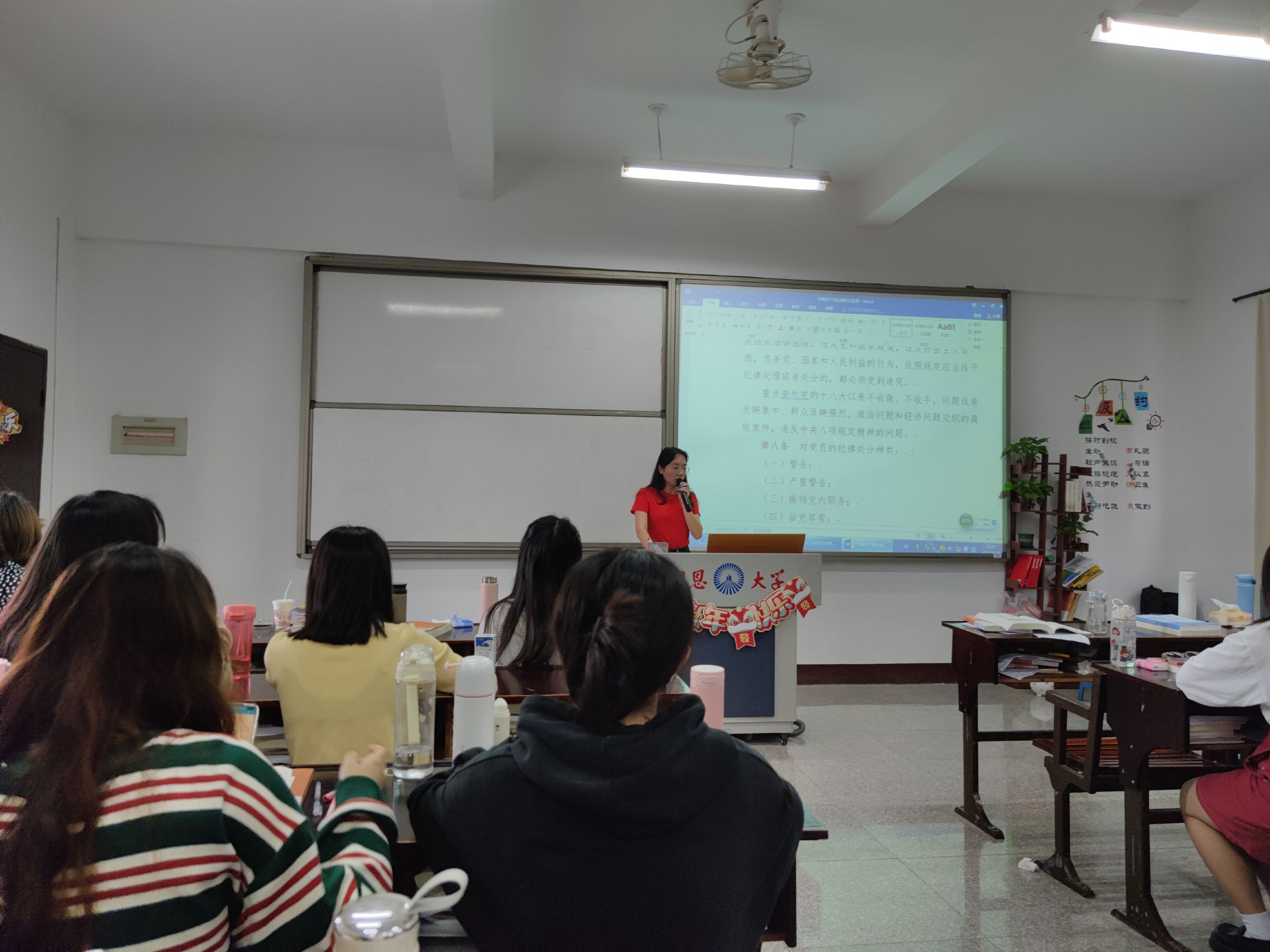 许淑琴书记围绕“学习党纪法规,增强自律意识”主题,带领学生党员同志对党纪党规进行学习讨论,进一步强化了学生党员对自我的身份认识,提升讲规矩守纪律的自觉性,夯实了政治理论基础和思想基础。(图/文 Beat365正版唯一官网必一学生党支部)