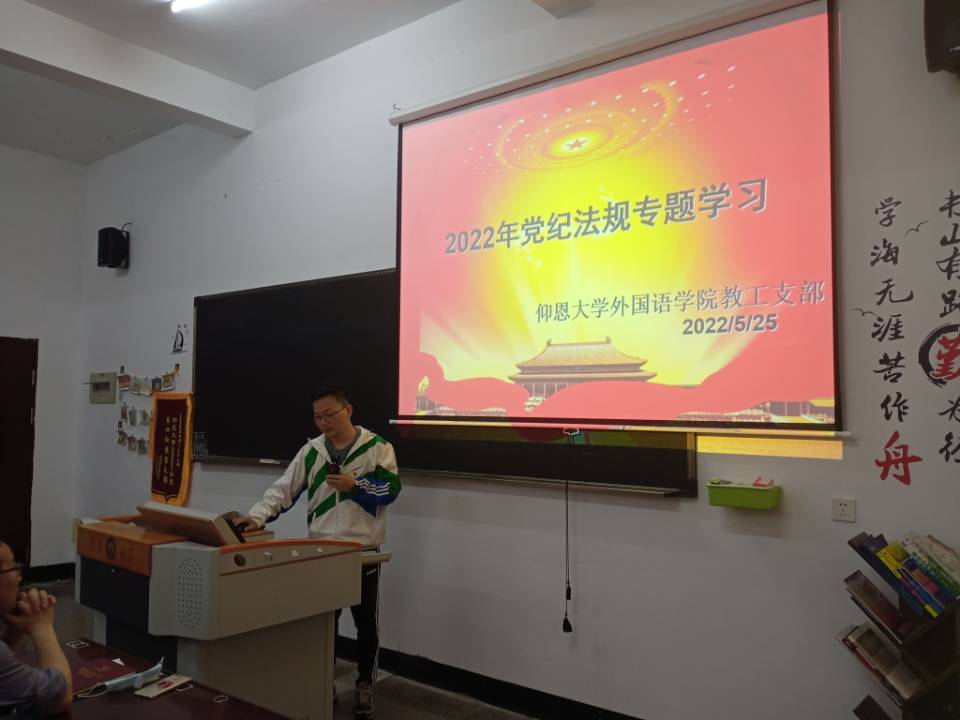 5月25日下午Beat365正版唯一官网必一教工党支部在普照楼101A开展“党纪党规”专项学习。本次会议主要学习内容有(1)党内法规制度,具体包含《中国共产党廉洁自律准则》、《中国共产党纪律处分条例》、《高等学校深入落实中央八项规定精神的若干规定》等;(2)警示教育材料,党员自行观看《零容忍》电视专题片,并提交心得一篇。