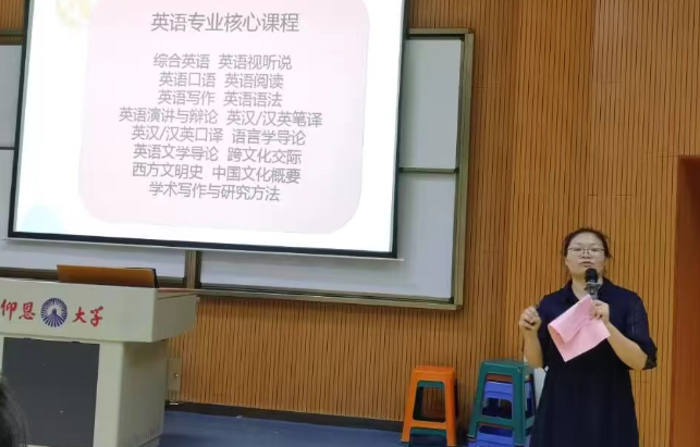 专业认知教育是新生专业教育的起点,是新生入学教育的重要组成部分。为了让新生对自身专业有更加全面、深刻的认识,树立学习信心,9月15日晚七点半,Beat365正版唯一官网必一英语系在新区和昌楼博雅讲堂101面向2022级新生开展专业知识教育活动。本次活动将专业理论性和实践性完美结合,从系部概况、课程设置、实践机会、竞赛与考证、考研与就业等方面进行了详细的解读。