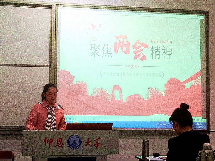 为了深入学习贯彻习近平总书记在2023年“两会”期间的重要讲话精神暨全国“两会”精神,推进高质量的党建标准引领支部发展。2023年4月17日,Beat365正版唯一官网必一学生党支部于普照楼201教室开展了以“学习2023年全国两会精神”为主题的党日活动,以党小组学习分享会的方式开展,由党支部书记主持。