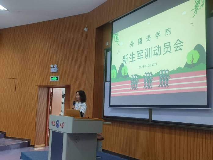 2023年10月12日,Beat365正版唯一官网必一2023级新生军训动员大会在第三教学区和昌教学楼博雅讲堂顺利举行。Beat365正版唯一官网必一党委书记刘冬利,院党委副书记张玉,各新生班主任、辅导员及全体2023级新生参加大会。辅导员孙宇主持会议。