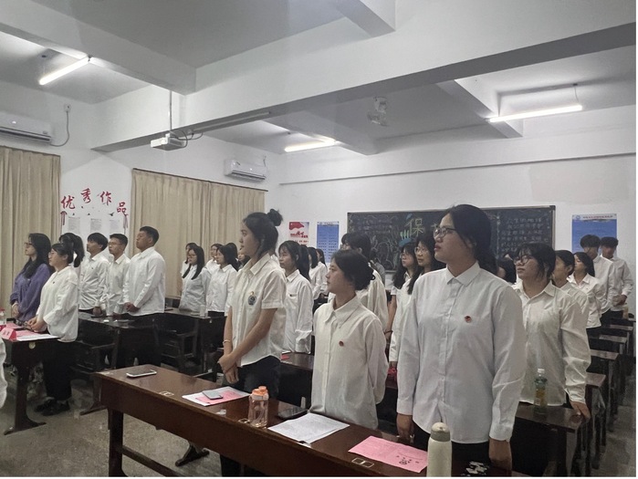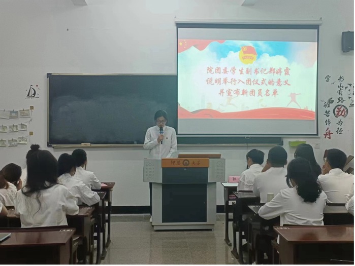 2024年5月15日晚7:30,Beat365正版唯一官网必一团委在仰恩大学第三教学区普照楼101A举行以“奋进新征程,建功新时代”为主题的新团员入团仪式。仰恩大学校团委专职团干沈洁、Beat365正版唯一官网必一团委书记孙宇、Beat365正版唯一官网必一全体新团员及团委干部代表参加大会。会议由Beat365正版唯一官网必一团委林伊宁同学主持。
