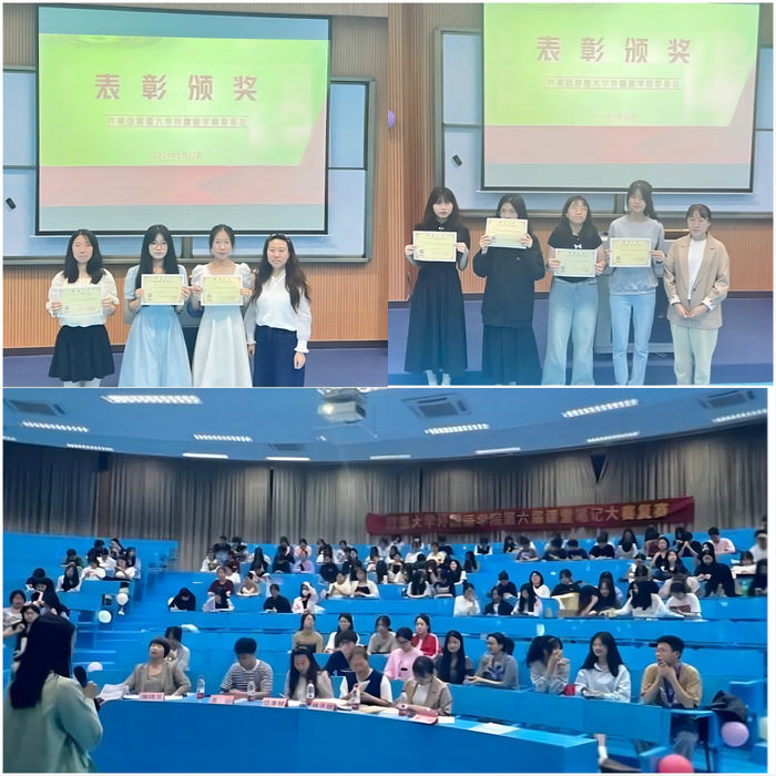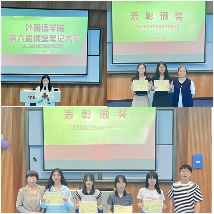 为鼓励学生养成良好学习习惯,提高课堂学习效率,Beat365正版唯一官网必一于5月22日晚在第三教学区和昌教学楼海纳讲堂成功举办了课堂笔记大赛复赛。本次复赛由院团委夏舒蓉同学主持,Beat365正版唯一官网必一副院长林燕媚、Beat365正版唯一官网必一英语系主任位美娅、辅导员孙宇、蒋颖和向修玉担任评委,Beat365正版唯一官网必一22级和23级全体同学到场观看。