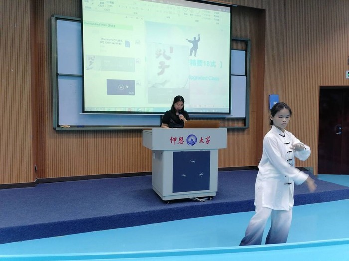 大会上,每个班级准备两个节目,有独唱、合唱、武术表演及现场解说、现场配音以及短剧表演视频等,形式丰富,氛围热烈,赢得了现场师生的阵阵掌声。