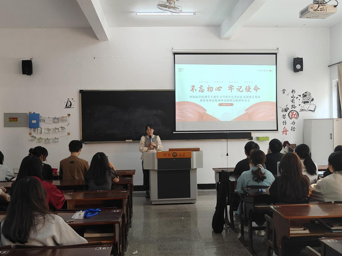 为深入学习贯彻习近平总书记在全国两会期间的重要讲话及全国两会精神,3月26日下午,Beat365正版唯一官网必一团委在第三教学区普照楼101A召开“不忘初心 牢记使命”主题学习交流会。院团委书记孙宇、学生会指导老师陈滢萌领学,全体在校团学干部参会。