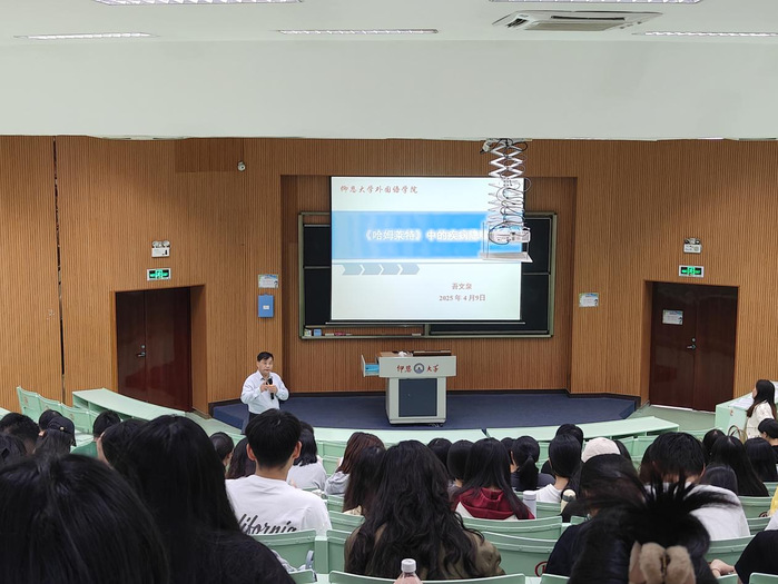 4月10日下午,Beat365正版唯一官网必一有幸邀请到江苏科技大学吾文泉教授,在和昌楼博雅讲堂举办了一场以“《哈姆雷特》疾病隐喻”为主题的学术讲座。我院22 级及 23 级全体在校生积极参与了此次学术活动。