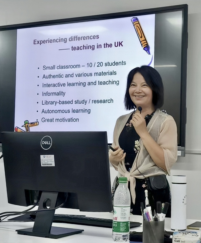 凭籍自己深厚的学术造诣和几十年来积累丰富的教科研经验,薛惠娟教授用一口流利的英式英语贯穿整个讲座,以生动的语言、鲜活的案例,深入浅出地为学院教师阐述了科研工作的重要性以及开展科学研究的方法与途径。她主张科研要紧密结合教学实际,以解决教育教学中的问题为导向,不断提升教育教学质量。讲座现场的教师们全神贯注地聆听,不时低头记录要点、不时拍照保留PPT课件内容。薛教授的精彩讲座受到了教师们的一致好评。