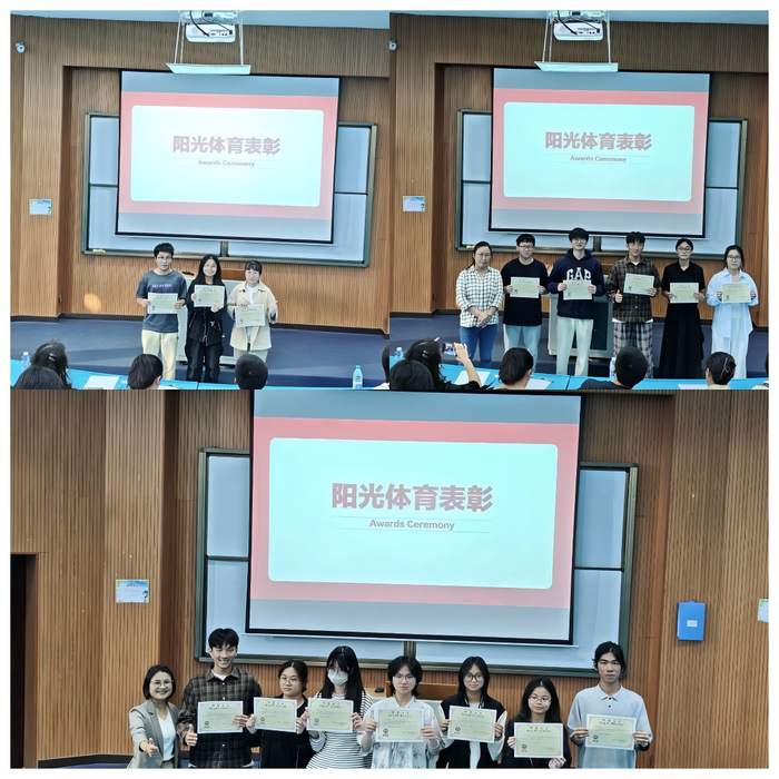 在阳光体育表彰环节,大会共颁发先进班集体奖3个,22级、23级、24级先进个人奖各5名。这些奖项旨在鼓励学生积极参与体育锻炼,促进全面发展。