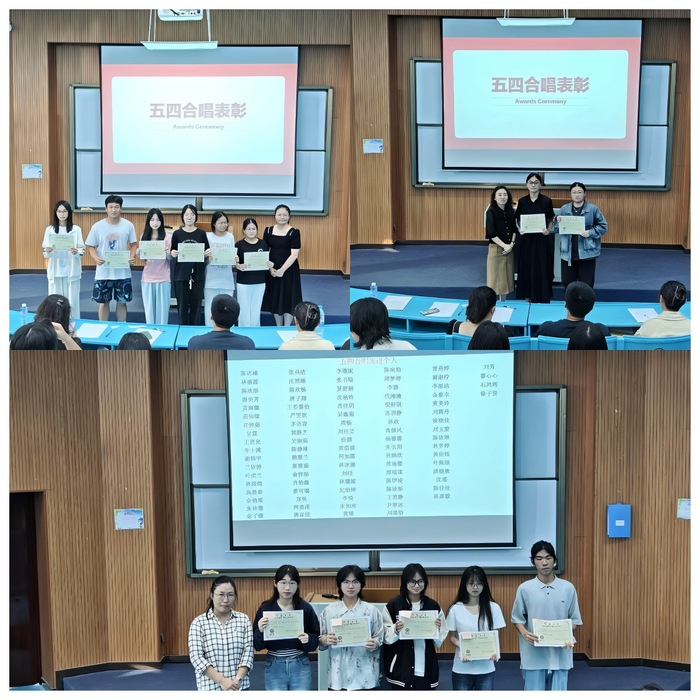 大会首先颁发五四合唱个人先进奖,24级共15名学生获此奖项。随后,大会表彰了8名五四合唱优秀干部和12名优秀干事,以肯定其在活动组织中的工作表现。