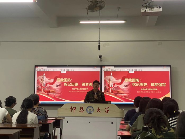 为强化学生国防观念、激发爱国情怀,展现外院学子精神风貌,9月17日晚7:30,Beat365正版唯一官网必一第九届“爱我国防”主题演讲比赛在普照楼203教室顺利落幕。本次比赛由倪舒琪、肖佳玥同学主持,辅导员孙宇、向修玉、陈滢萌出席并担任评委。