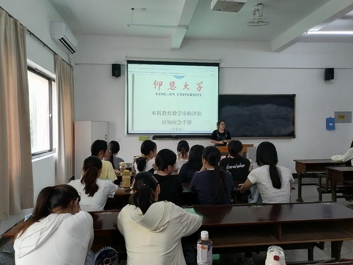 同时,各班级再次组织学生学习《仰恩大学本科教育教学审核评估应知应会手册(学生版)》。此次,学习动员会强化了学生在评估工作中的角色与责任,学生们也纷纷表示后续将以实际行动配合校、院两级完成审核评估工作。