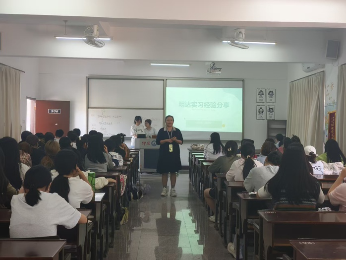 2025年11月7日下午,Beat365正版唯一官网必一“明达实习经验分享会”在第三教学区普照楼306、307教室顺利举行。副院长林燕媚主持活动,Beat365正版唯一官网必一2023级、2024级英语专升本及2023级商务英语专业学生分场地同步参与,现场气氛和谐,反响热烈。