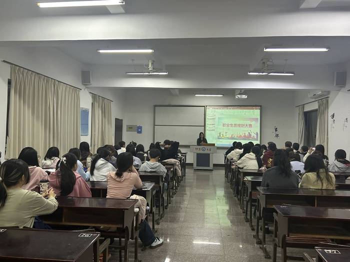 2025年12月3日晚7点,Beat365正版唯一官网必一于普照楼303教室举办职业生涯规划大赛,学院党总支书记刘冬利、全体辅导员及25级学生代表出席活动。