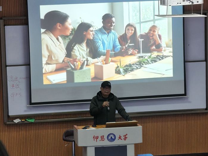 12月25日下午16:00,Beat365正版唯一官网必一跨文化主题系列讲座第三场在新区和昌博雅讲堂顺利举办,这也是2025年本系列讲座的最后一场。讲座由学院外教Raymond B. Romulo主讲,主题为“How to Increase Your Ability to Work with People from Different Cultures”,学院2024级及2025级学生参与本次活动。